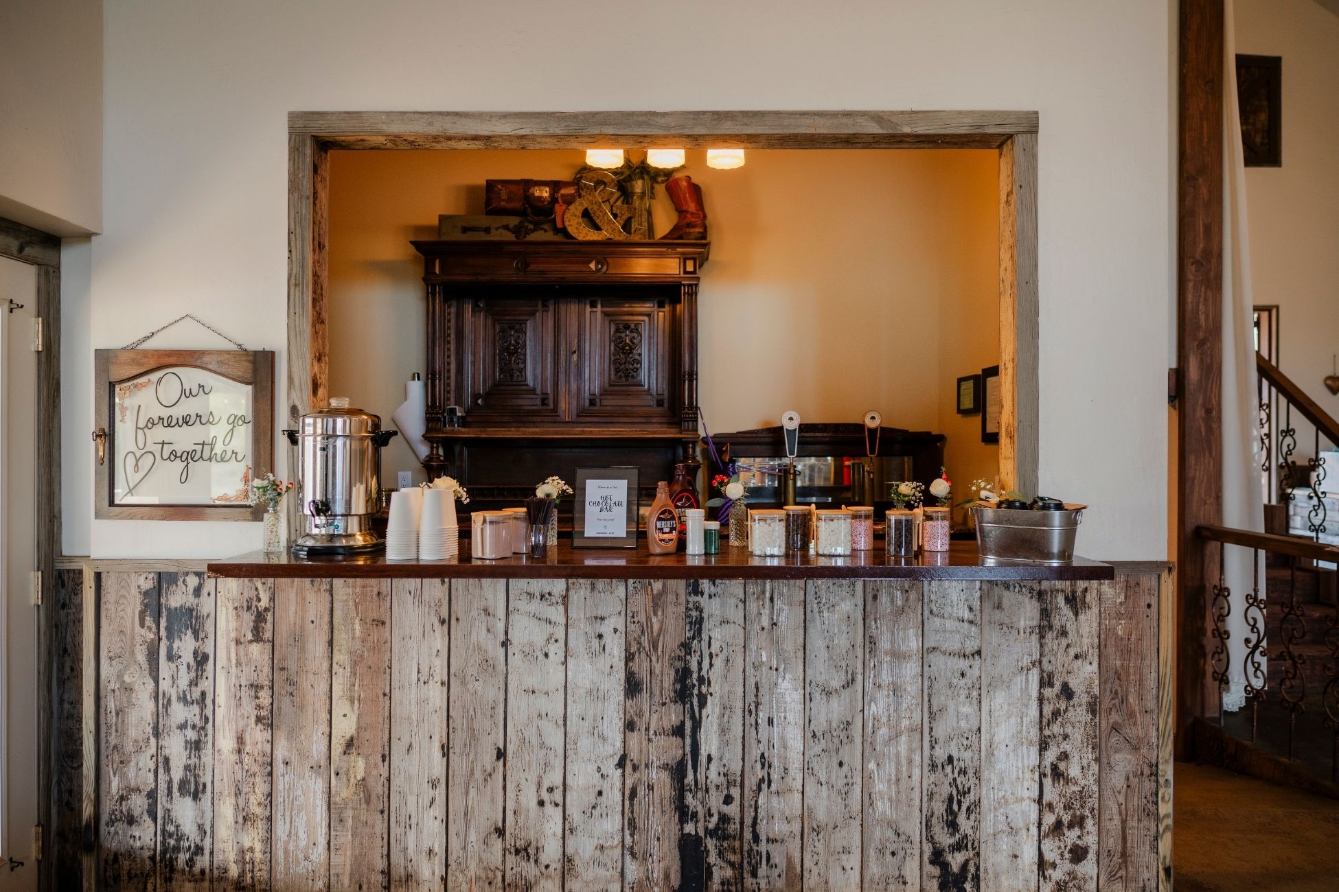 At The Ironwood Ranch, nature-inspired decor and wooden accents harmonize with the scenic Hill Country views. Guests can choose between outdoor and indoor receptions, with additional covered patio and bar areas to enhance the experience. This versatile setup ensures a seamless and enjoyable event for all guests.