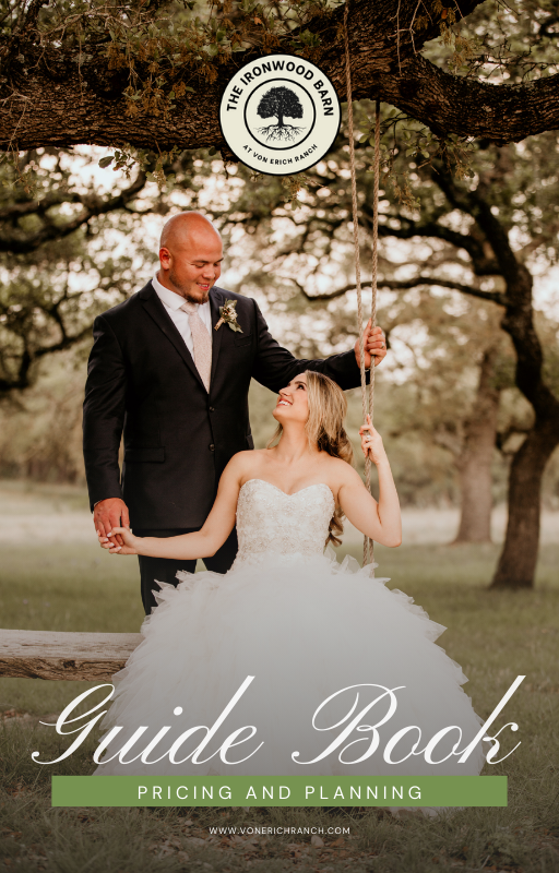 Download your free guide now to access our venue pricing, FAQs, and wedding planning tips! Discover the affordability and customizability of The Ironwood Barn at Von Erich Ranch, and learn why hundreds of couples have chosen us as their dream wedding venue.
